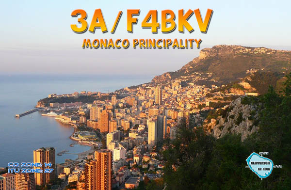 3A/F4BKV - Monaco Dates: 12/05/12 - 13/05/12 Locator: JN33QR Location: QSL: Back to DX EXPEDITIONS Page